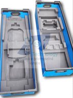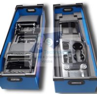 Pre ich výrobu bola použitá XPE pena, ktorá musela mať ESD úpravu (antistatická), nakoľko do fixácií sa vkladajú aj elektrické súčiastky. Návrh sme vypracovali na základe zákazníkom dodaných CAD dát. Súčasťou dopytu bola aj kartonplastová bednička s okrajovou lištou.