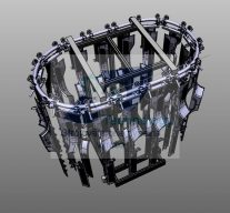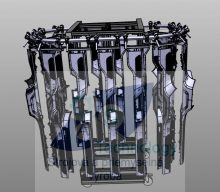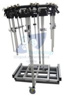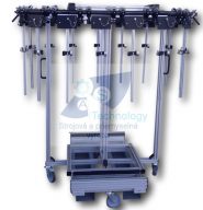 Na konštrukcii je umiestnená trubková dráha s pojazdmi, ktoré sú navzájom pospájané do tzv. vláčika. Na pojazdoch sú háky, na ktoré sa vešajú plastové diely po pároch. Každý pojazd je vybavený rúčkou pre posun po odobratí dielu.