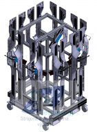 Zásobovací vozík je možné vyhotoviť aj vo variante s vrchnou otočnou časťou, na ktorej sú upevnené háky na zavesenie plastových dielov. Nakladanie a odoberanie dielov je opäť možné z ktorejkoľvek strany. Konštrukcia vozíka je na kolieskach a tvoria ju hliníkové profily Bosch Rexroth. Pred dielmi je ochranný rám, ktorý zabraňuje poškodeniu dielov pri manipulácií na VZV.