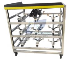 Vychystávací zásobovací vozík je určený pre blendy so vzduchovými otvormi do palubovej dosky pre projekty Audi Q7/Q8. Pôvodné vozíky boli navrhnuté iba pre diely Audi Q7 a museli byť prerobené ako univerzálne na diely pre Q7/Q8 pre ľavostranné aj pravostranné riadenie. Všetky miesta vo vozíku sú univerzálne a dá sa do nich vložiť ktorákoľvek varianta spomínaných projektov. Samotné vozíky museli byť kvôli tejto variabilite rozšírené, nakoľko diely boli rozlišne široké. Stabilitu dielu vo vozíku zabezpečujú frézované lôžka z hliníka na posuvoch, ktoré uľahčujú manipuláciu s dielmi. Následne boli dodané 2 ďalšie úplne nové vozíky pre projekt Q8 s možnosťou doplnenia lôžok aj pre diely Q7.