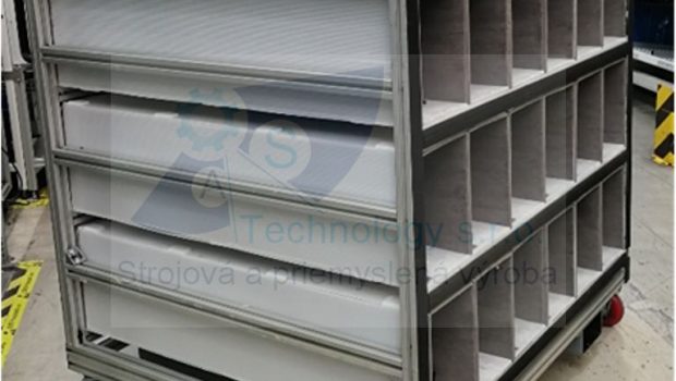 samotného okienka. Na vrchnú časť vozíka boli vyhotovené lôžka z antistatickej peny, slúžiace na uloženie HUD displeya. Vozík je na spodnej časti vybavený tunelmi, ktoré